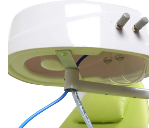 The instrument tray attached to the dental chair is constructed of high-quality material.