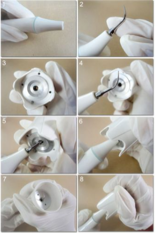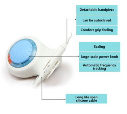 The scaling tip is made of high strength alloy material. The atomized spraying design forms the cavitations, and in conditions of water it will form oxygenated water to release the new eco-pure oxygen, which can efficiently inhibit periodontal anaerobic bacteria against periodontal diseases.