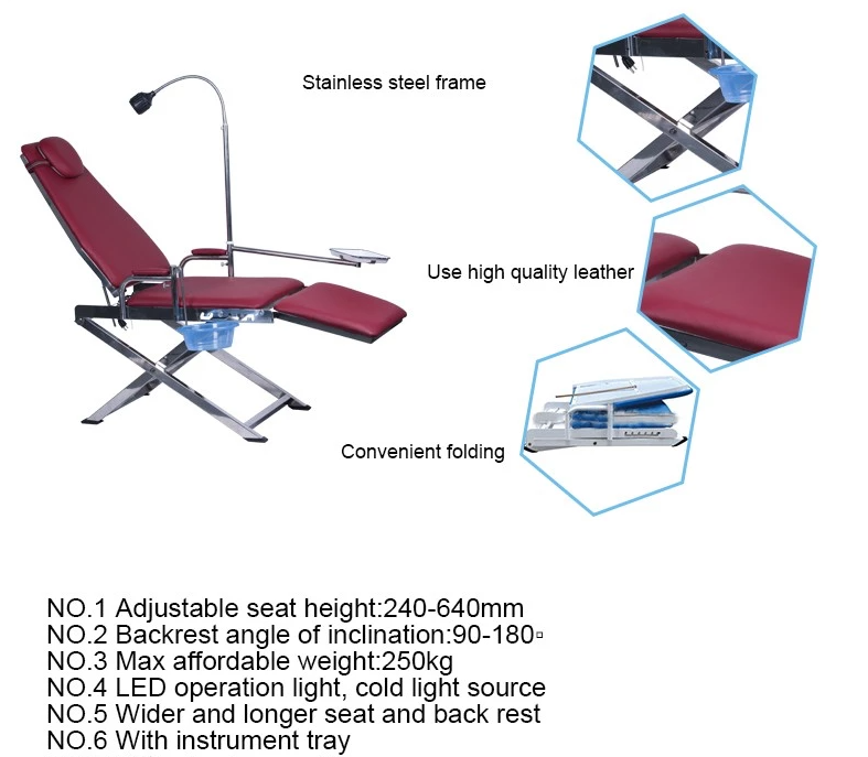 Waldent portable dental chair is available with a fixed or adjustable leg rest.